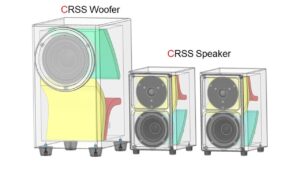 We want to listen to music with the best sound quality. With this desire, we have continued our research and development for 48 years. We have invented the world’s first CRSS (krɔ’ːs) technology and developed the CRSS speaker. CRSS is an acronym for Concave Reflection Speaker System. Sound waves radiated inside the speaker box are 100% silenced by the CRSS structure. Since there are no reflected sound waves from inside the speaker box, the sound waves radiated to the listener are extremely undistorted, reproducing a stereo image with overwhelmingly high sound quality and high accuracy. Below is a picture and perspective drawing of the world’s first CRSS speaker.